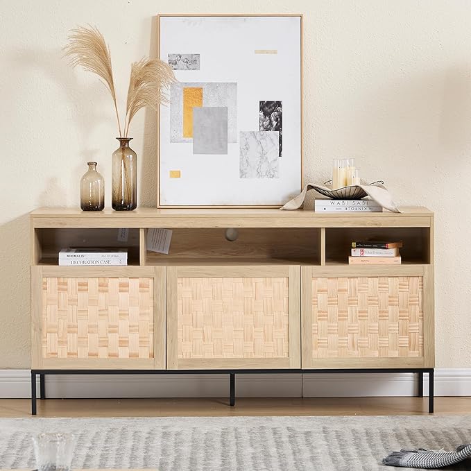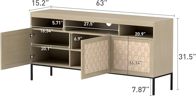 - Elegant Woven Doors: The unique woven pattern on the doors enhances the visual appeal and offers hidden storage to keep your living room neat