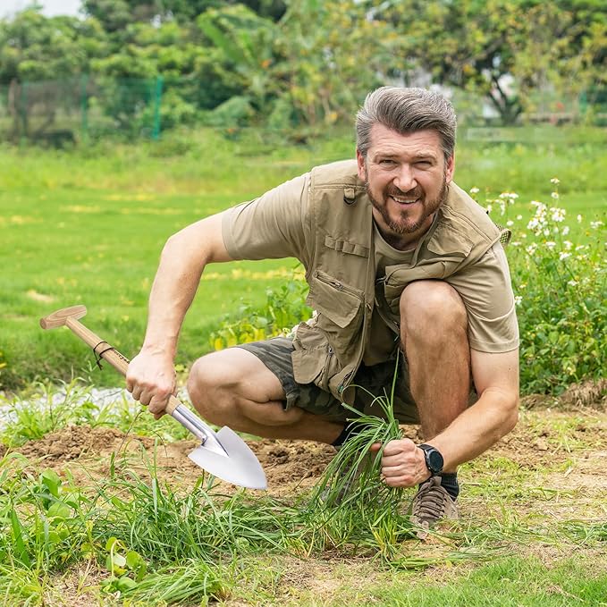 Berry&Bird Perennial Shovel, 21.6'' Pointed Head Garden Spade with Sharp Blade Wood Hand Shovel, Stainless Steel Long Trowel Gardening Tool for Roots, Planting, Digging, Transplanting and Cutting