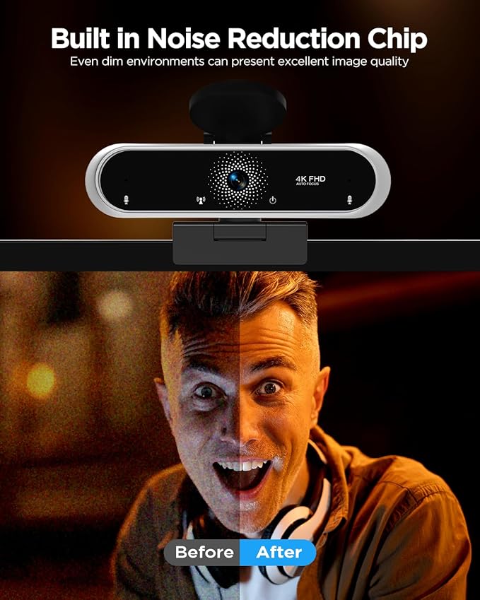 - 【High-Resolution 4K Webcam】 Webacam with a 4K FHD image sensor, this webcam for PC offers clear images with 4K resolution and transmits the videos at 30 frames per second in real time, you can see your digital world with a crisp and vivid view and display videos more smoothly and stably. The high dynamic range ensures a clear face even in low light conditions or backlight.