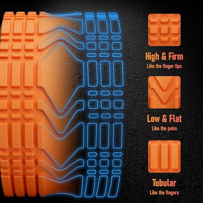 - Enhanced Blood Flow & Recovery: The 3D grid surface promotes circulation and oxygen flow while rolling.Its multi-density ridges offer varying pressure levels, helping you achieve deeper stretches and faster muscle recovery. Indulge in unparalleled comfort with our back wheel for pain relief.