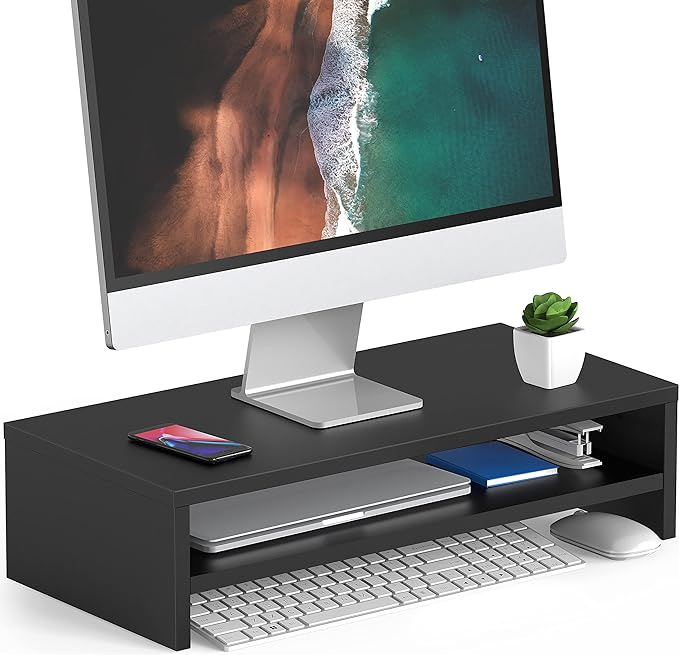 - 【2 Tiers for Desk Organization】Extra storage space while improving the height of your computer display. They are spacious enough to hold some of your larger sized things such as books, tablets. The storage of small stuffs is not even a problem.