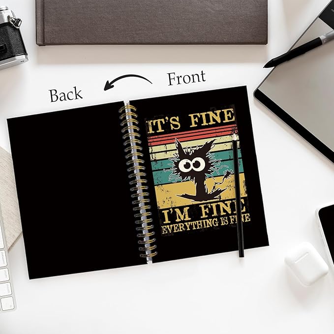 It's Fine I'm Fine Everything is Fine Funny Notebook, Black Cat Notebook Journal, Funny Journals for Women, Cat Lover Gifts for Women, Cat Mom Gifts, Cat Office Supplies, 5.5x8.3 Inch