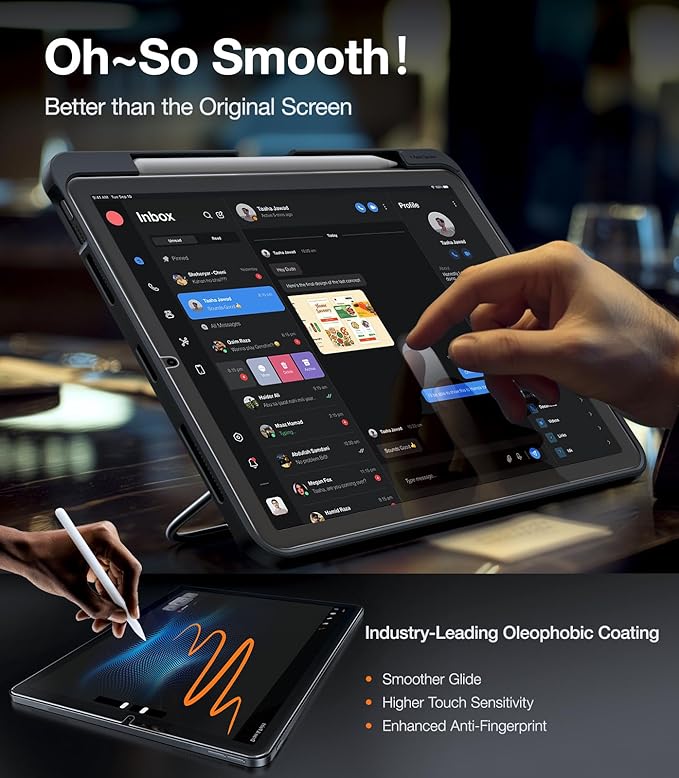 - 【Smooth Touch, Quick Response】Experience silky-smooth touch with our high-sensitivity touch layer and ultra-slick oleophobic coating. Your iPad Mini A17 Pro screen protector ensures precise responsiveness for typing, gaming, and drawing.