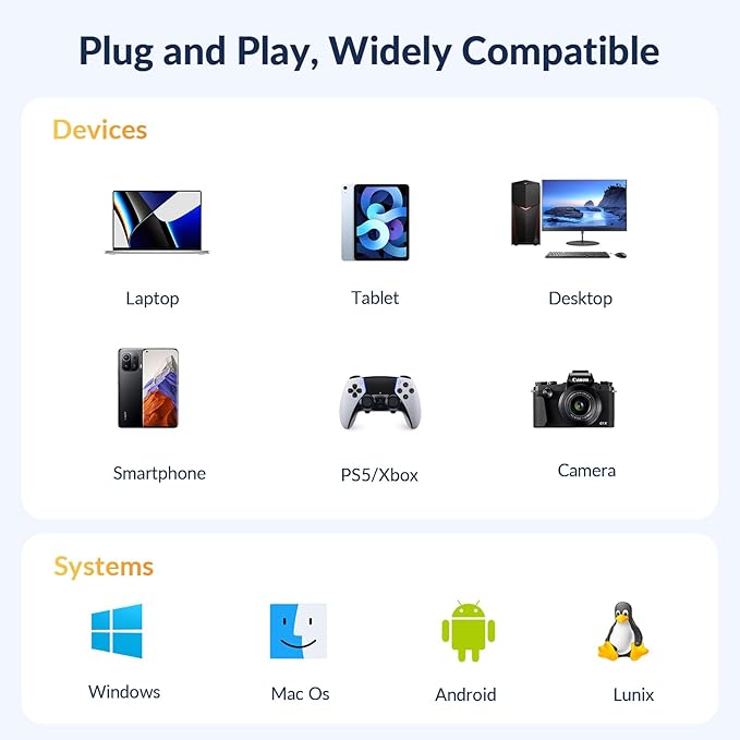 - Compatible Devices : Camera, Desktop, Gaming Console, Laptop, Smartphone