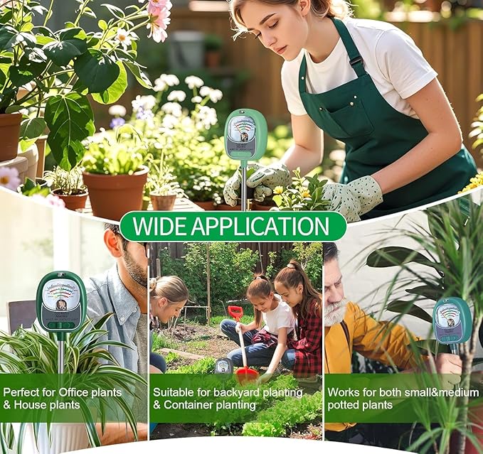 - NO Require Battery & Widely Use: This 4-in-1 soil test kit doesn't need an extra battery and is upgraded with a durable single soil testing probe which less hurts the roots, and can detect complex soil conditions(mixed-soil), can widely be used for indoor&outdoor garden, and all stages of Organic-gardening/Ornamental-Landscapes/small-trees/composting/pots, etc, You can buy one to understand more about your soil and enjoy the planting and harvest