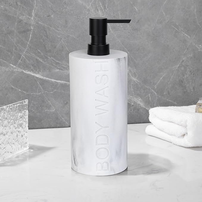 - Sophisticated Embossed Details: The engraved "BODY WASH" text ensures easy identification, while the polished white marble-like finish adds an air of opulence to any setting, blending functionality with style.