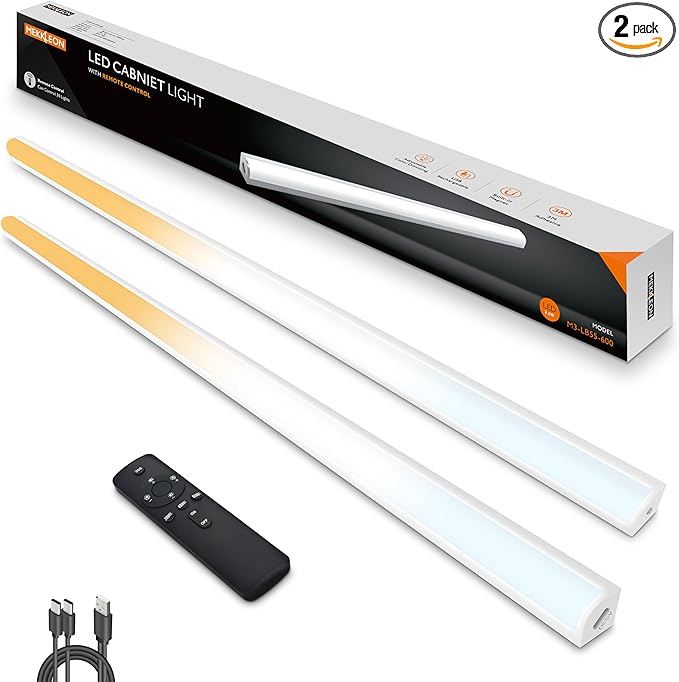 - 👍[Upgraded dimmable and color-adjustable closet light]: The under-cabinet light provides three different color temperatures ((3000K / 4500K / 6000K), which can be switched through the light switch or remote control. It uses 68 energy-saving LED lights and no glare With a frosted cover, the display index of the cabinet light reaches 90, the light is even and does not hurt the eyes. In addition, unlike the fixed brightness of other products, our indoor sensor lights can be infinitely dimme