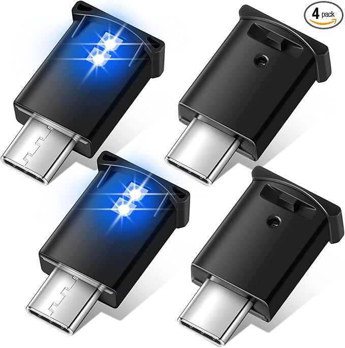 Frienda 4 Pieces Mini USB LED Light, Car LED Interior Lighting 5v Smart USB Atmosphere Light, Laptop Keyboard Office Decoration Night Lamp, Adjustable Brightness, 8 Colors (Type C)
