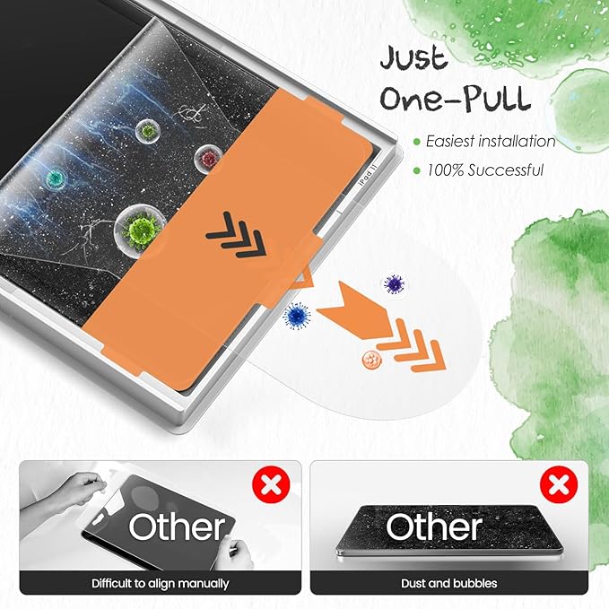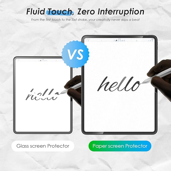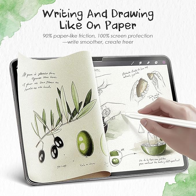 - 【Paper-feel Tactility & Military-Grade Impact Protection】This ipad 11 inch screen protector uses innovative surface treatment technology to accurately restore the natural texture and writing resistance of paper, creating a paper-like experience for digital writing. 9H hardness military-grade tempered glass provides 360° full-dimensional protection against scratches, chips and accidental drops. It also reduces stylus tip wear and prolongs the life of the accessory