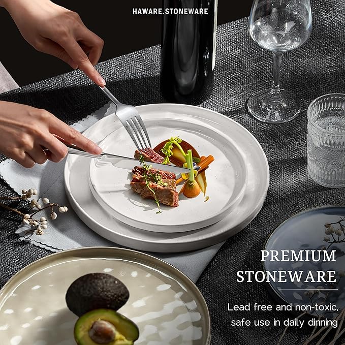 - 【HEALTHY STONEWARE】Crafted from high quality stoneware, LEAD-FREE, CADMIUM-FREE and Non-toxic, won't release any harmful substances into your food while in use, Ensure its durability and safety, Those dinnerware are undergoes firing at a high temperature, extremely durable and chip resistant, suitable for long term and heavy use, they are both dishwasher safe and microwave safe, making the processes of cleaning and cooking effortless