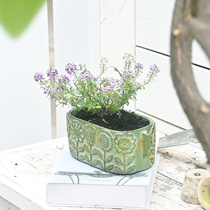 - 【Rectangular Planter】The rustic charminng decorative planter features an intricate lace-like pattern etched into the concrete, lending a vintage and weathered aesthetic.The package includes a rectangle succulent planter pot in perfect size: 7.87 inch(L)*3.15 inch (W)* 3.75 inch (H)