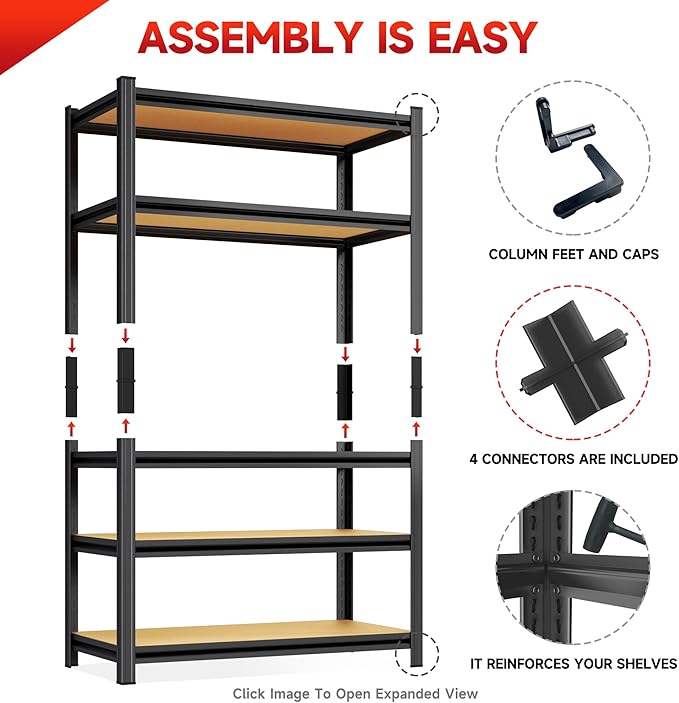 - 【Industrial-Strength Dual-Column Construction】 Built for maximum stability, our storage shelves feature double-layer steel columns that provide enhanced weight capacity and prevent wobbling. Unlike flimsy single-post racks, this heavy-duty dual-column design ensures rock-solid support, making it ideal for storing bulky garage tools, warehouse supplies, or pantry essentials with confidence.