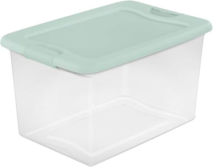 Sterilite 12 Pack Latching Box, Clear Plastic Stackable Storage Bin with Lid, 64 Quart, Mindful Mint