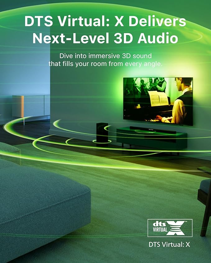 - DTS Virtual:X: Transforms your TV sound, bringing you a virtual 3D sound experience no matter what's on screen! You don't need extra speakers, and it works in any room: turn it on via the soundbar's remote control, or the Philips Home Entertainment app