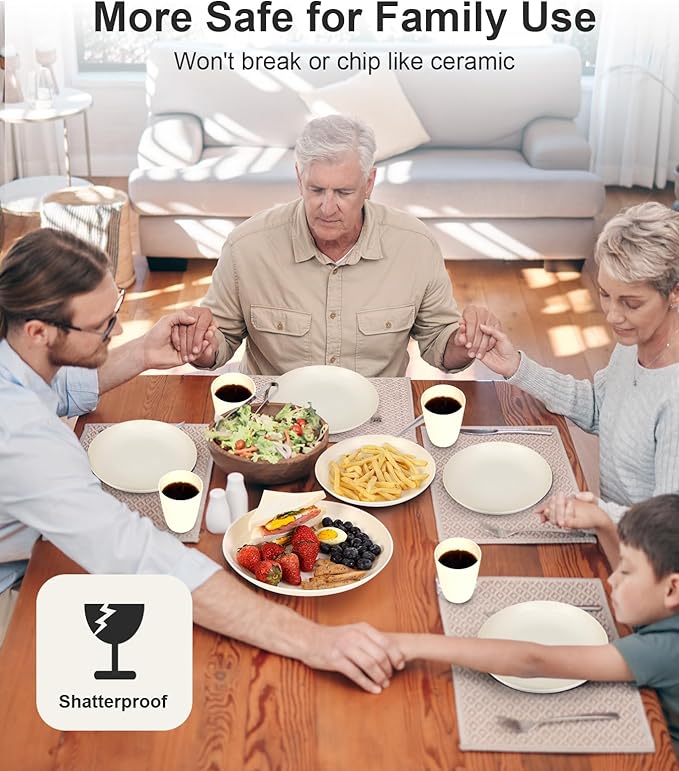 - Durable and Kid-Friendly: Nearly unbreakable, shatterproof plastic dinnerware set with raised edges, resistant to chipping, scratches, and wear-related damage. Ideal for camping, RVs, beach houses, and safe for toddlers and children