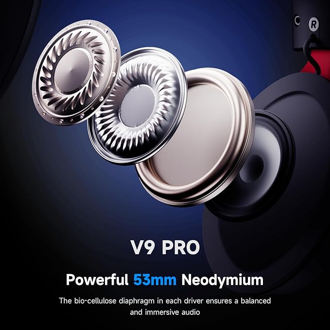 - 【7.1 Surround Sound for FPS Games】Experience Crystal-Clear and Rich Sound Quality with Powerful 53mm Neodymium Drivers. The cutting-edge bio-cellulose diaphragm in each driver where you can hear details like enemy footsteps and distant gunfire by gaming headsets, ensures a balanced and immersive audio experience.