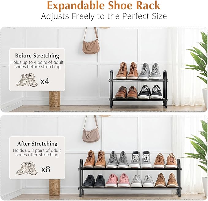 - 【Expandable & Adjustable Design】This shoe rack for closet effortlessly expands from 12" to 27" wide, adapting to your space needs. The adjustable shoe rack features 3-tier shelves to organize sneakers, boots, or kids' shoes, perfect for closet shoe storage, entryway, or small spaces.