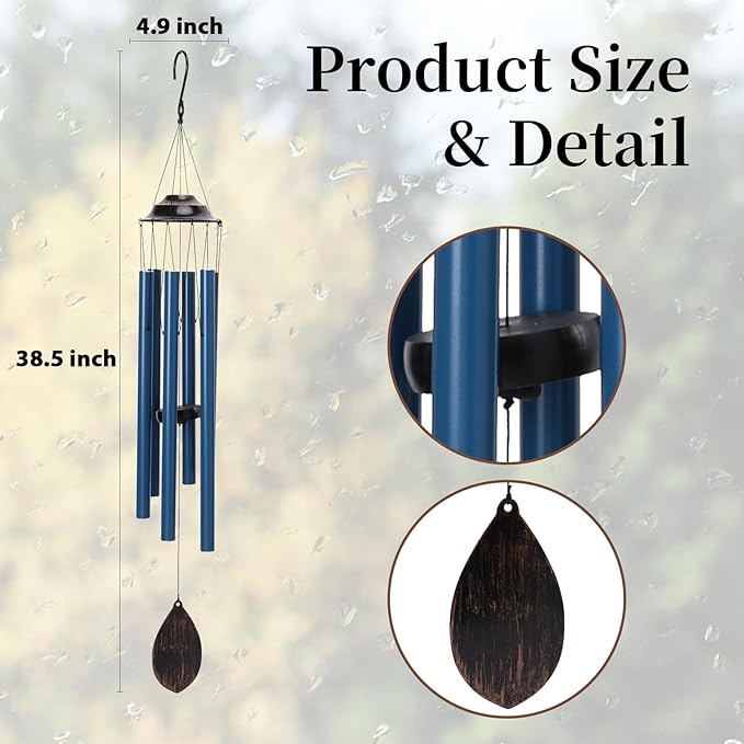 MUMTOP Wind Chimes for Outside - Deep Tone Memorial Sympathy Wind Chimes Outdoor, 38.5 Inch Windchimes Clearance for Garden, Patio,Yard Decor Gift (Blue)