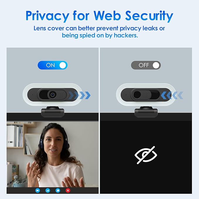 - Webcam with Privacy Cover & 65° FOV:The included privacy shield allows you to easily slide the cover over the lens when the webcam is not in use, offering immediate privacy and peace of mind during periods of non-use, also the stream web cam has a 65° narrow-angle lens, without showing much background and how messy in your office or room, it greatly protects your privacy