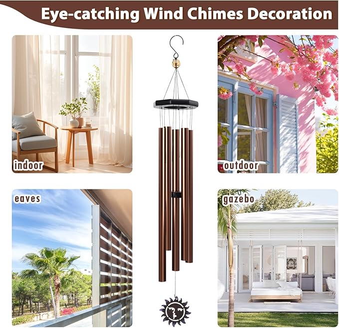 - {A Delightful Decoration} If you are a gardening enthusiast or a home decorating enthusiast, you will not be disappointed by our wind chimes, which can bring a dull garden to life. Our wind chimes for outside can provide a place full of vitality for your garden,yard,balcony,window or any other place that needed to add a beautiful melody to the environment