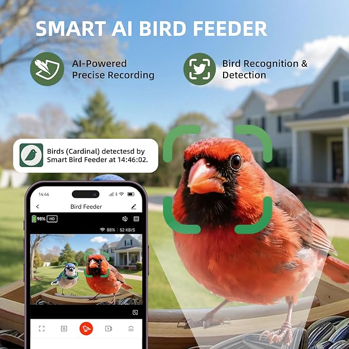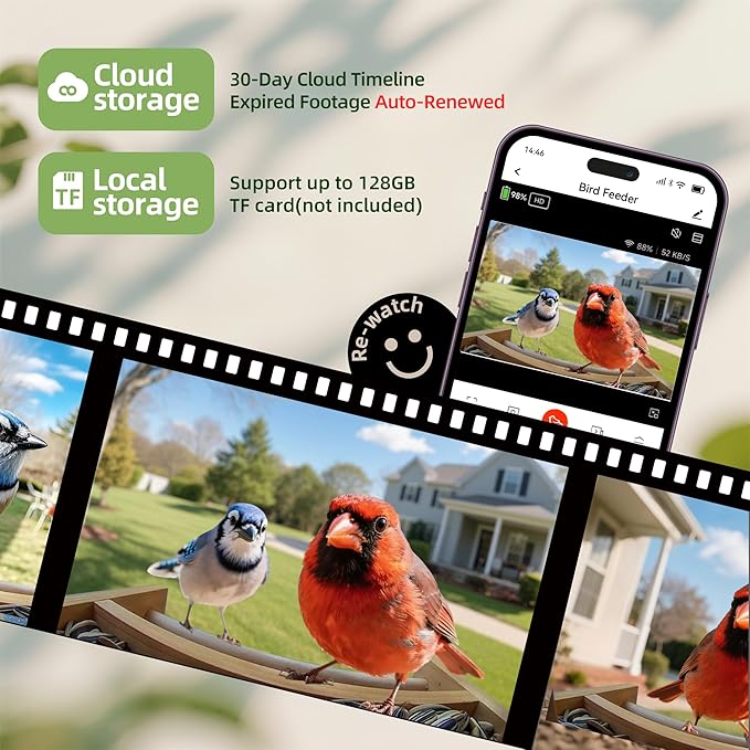 - AI BIRD ALERTS & 30-DAY CLOUD PLAYBACK: Get instant phone notifications from this bird feeder with camera. AI identifies species, while auto-overwriting cloud storage saves 30 days of visits – relive finches or owls anytime.
