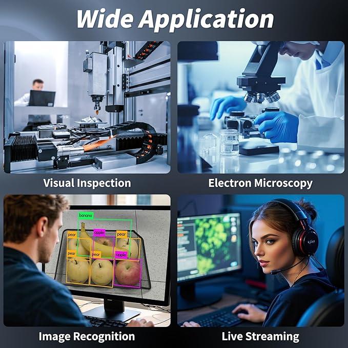 - 【Wide Compatibility and Applications】: UVC compliant, no additional software or drivers required.the webcam using UVC standard have powerful compatibility working with Windows /macOS/ Linux, And multiple cameras can working on a computer at the same time.It also works with Zoom, Skype, Youtube, Facetime, OBS and other software, making it ideal for visual inspection, medical equipment, electron microscopy, image recognition, video conferencing and live streaming.