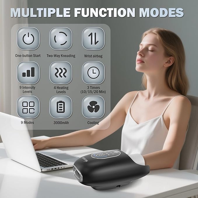 - Versatile Hand Massage Experience: This hand massage device features 9 unique massage modes and 9 adjustable intensity levels, catering to the diverse needs of all age groups, making it the perfect gift for loved ones seeking relaxation