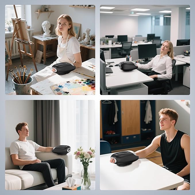 - Compression & Pressure Detection Sensor Design: Features a unique palm roller with independent airbag zones and adjustable wrist straps that deliver targeted air compression to fingers, palms, and wrists. Enhanced with pressure-sensing technology, the system automatically modulates intensity when detecting excessive force during use. This precision engineering effectively relieves stiffness and discomfort through controlled massage action.
