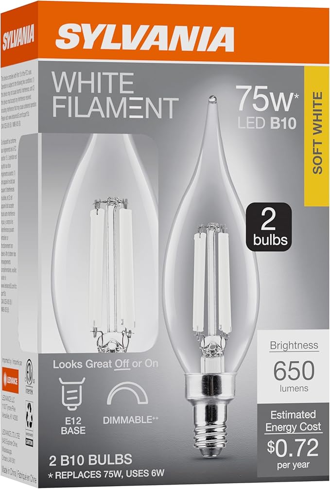 - SYLVANIA white filament line offers a variety of shape options and unique filament design for a vintage look with modern technology.