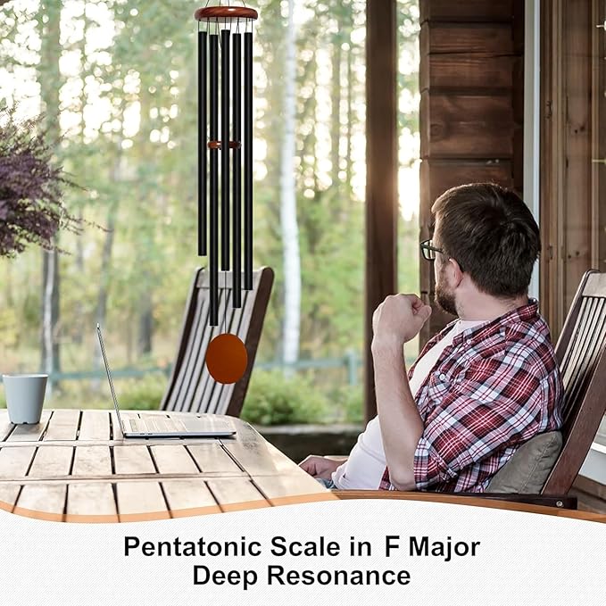 - 60 inch Large Deep Tone Wind Chimes for Outside: This wind chime has a total length of 60 inches and uses a 5-length combination of 31/29.5/27.5/25/23. The scale is manually adjusted to F major, creating a relaxing and deep tone melody. The tube with diameter of 1 inch and wall thickness of 0.06 inches creates a deep, rich, and aesthetically pleasing sound. When a gentle breeze blows, wind chimes play music like church bells, making you feel relaxed and calm.