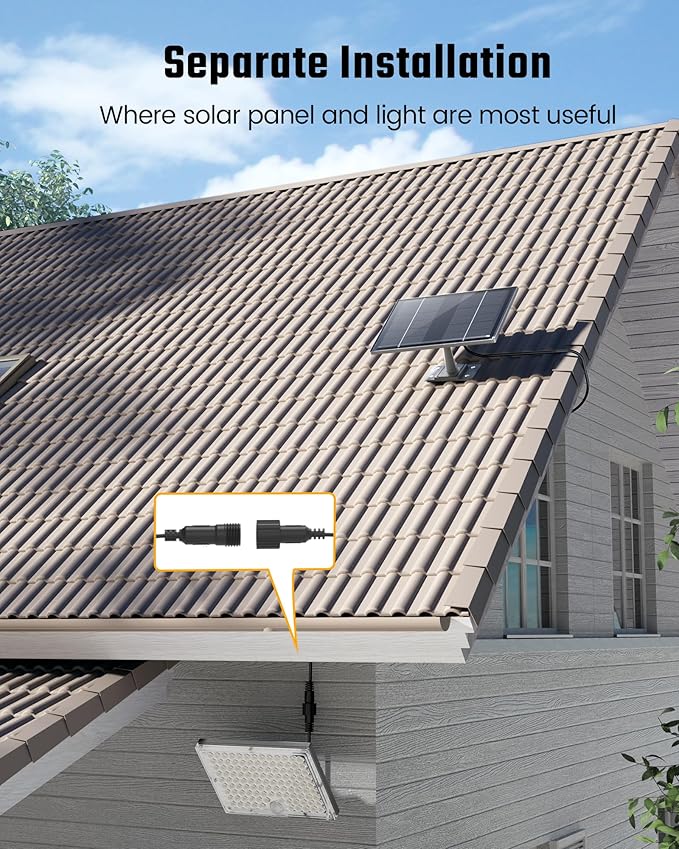 - 【Easy Installation with 16.4ft Cable】 - With a 16.4ft long cable, these LED Barn Lights can be effortlessly installed on rooftops, walls or gutter eaves to absorb the abundant sunlight. No complicated wiring needed - just secure the bases with screws and insert the light and solar panel for an off-grid, hassle-free setup.