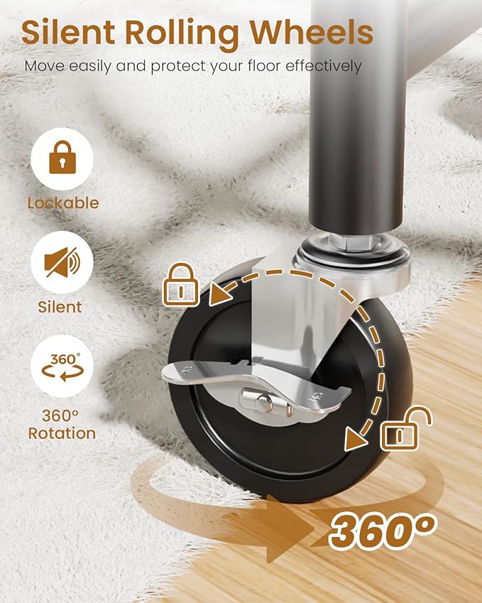 - ๐๐๐๐๐๐, ๐๐๐๐๐๐๐ & ๐๐๐พ๐๐ผ๐ฝ๐๐ ๐พ๐ผ๐๐๐๐๐: The casters of our coat rack have been carefully designed to move over a variety of floors such as hardwood, tile or carpet. Additionally, the 2 lockable wheels provide security, allowing you to keep your wardrobe rack securely in place when needed.