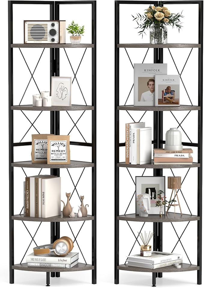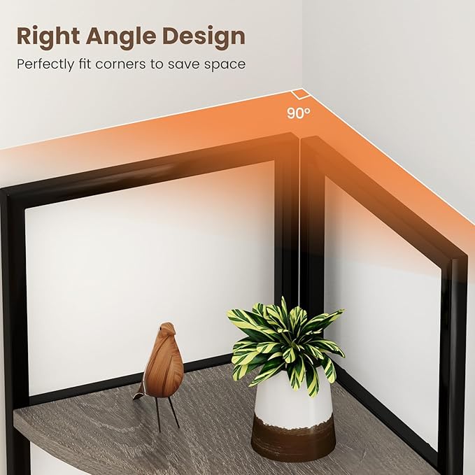 - [5-Tier Open Display Shelf]: Each corner shelf is thoughtfully spaced to accommodate items of various sizes, such as books, ornaments, potted plants, and photos. The open design makes it easy to access your belongings and keep them neatly displayed.