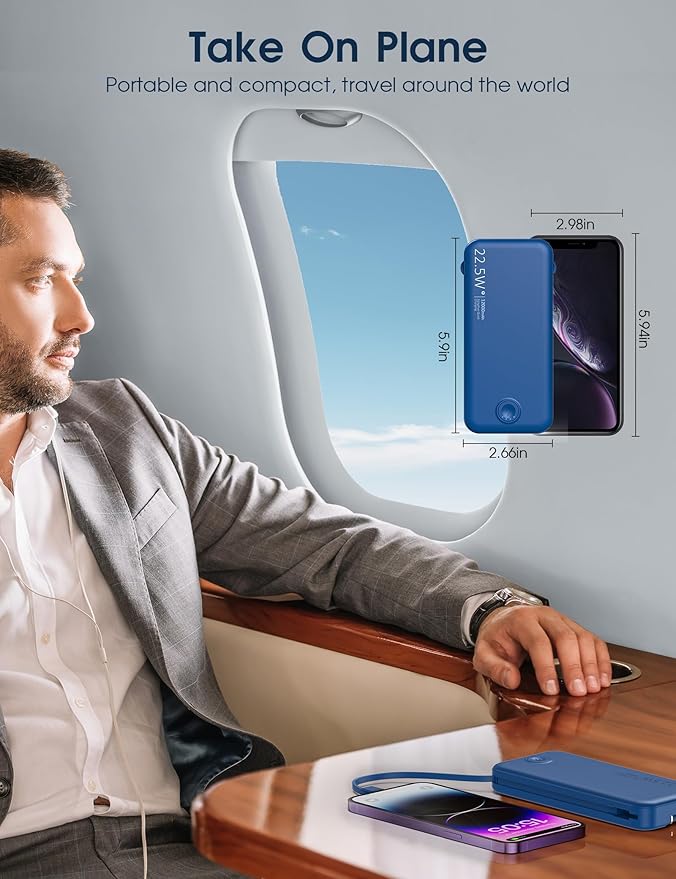 - Special Feature : Potable charger with built in cable and AC wall plug, USB C 20W, USB-A 22.5W fast charging, slim and lightweight, pocket size, camping, hiking, airplane travel necessities, LED indicator lights, over charging protection, short circuit protection, auto shut-off, scratch resistant Potable charger with built in cable and AC wall plug, USB C 20W, USB-A 22.5W fast charging, slim and lightweight, pocket size, camping, hiking, airplane travel necessities, LED indicator lights, over charging protectio… See more