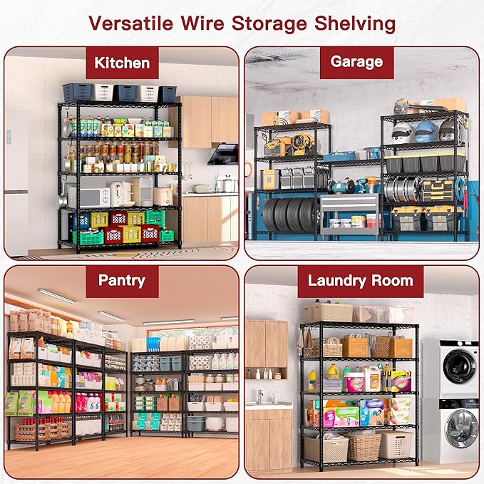 - Special Feature : 5 Tier Wire Shelving Unit for Storage, 1250 LBS Heavy Duty Shelving, Storage Shelves for Pantry Kitchen, DIY Metal Steel Shelves, Adjustable, Heavy Duty, NSF Certified, Space Saving 5 Tier Wire Shelving Unit for Storage, 1250 LBS Heavy Duty Shelving, Storage Shelves for Pantry Kitchen, DIY Metal Steel Shelves, Adjustable, Heavy Duty, NSF Certified, Space Saving