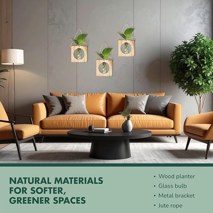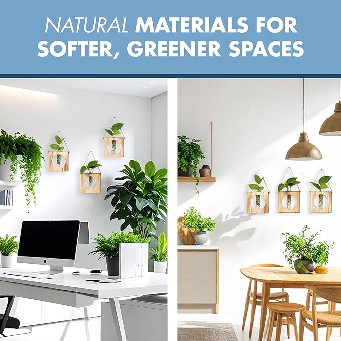 - Crafted from Natural Materials: Made from natural wood and glass, these propagated plant holders add a warm, organic touch to any room for a softer, greener, and more relaxing feel.