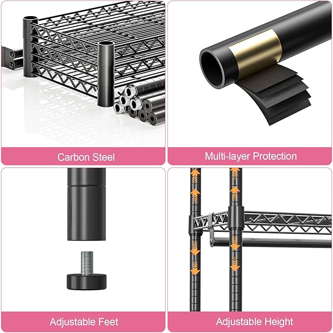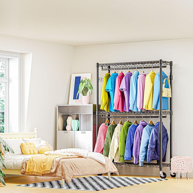 - Heavy-Duty And Durable Build – Crafted from premium carbon steel with anti-rust materials, the clothing rack with wheels boasts a sturdy 22.2mm diameter frame for long-lasting durability and stability