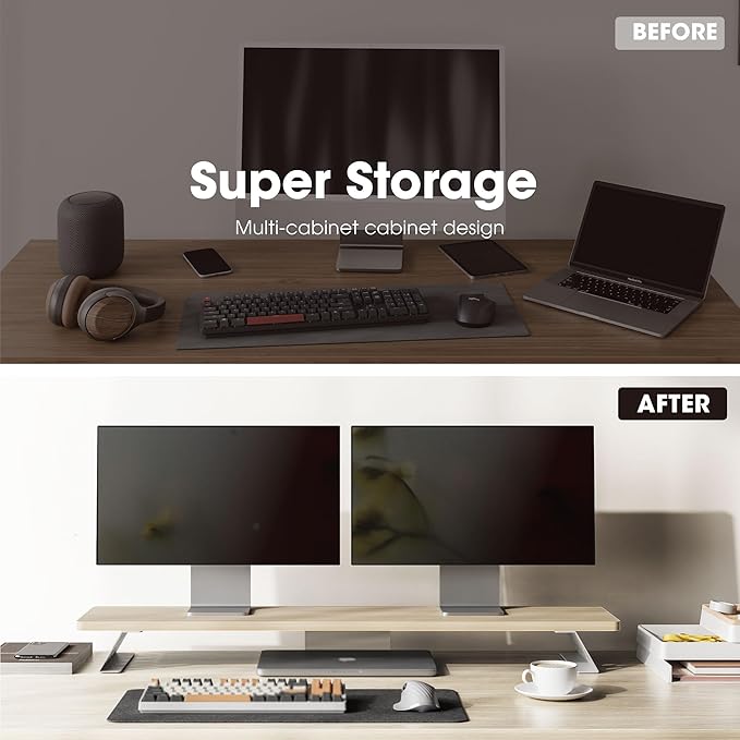 - 【Super Easy to Assemble】Our computer monitor riser comes with pre-drilled holes, all you need to do is screw the 4 brackets into the panel. You can install your dual monitor riser within 2 minutes!