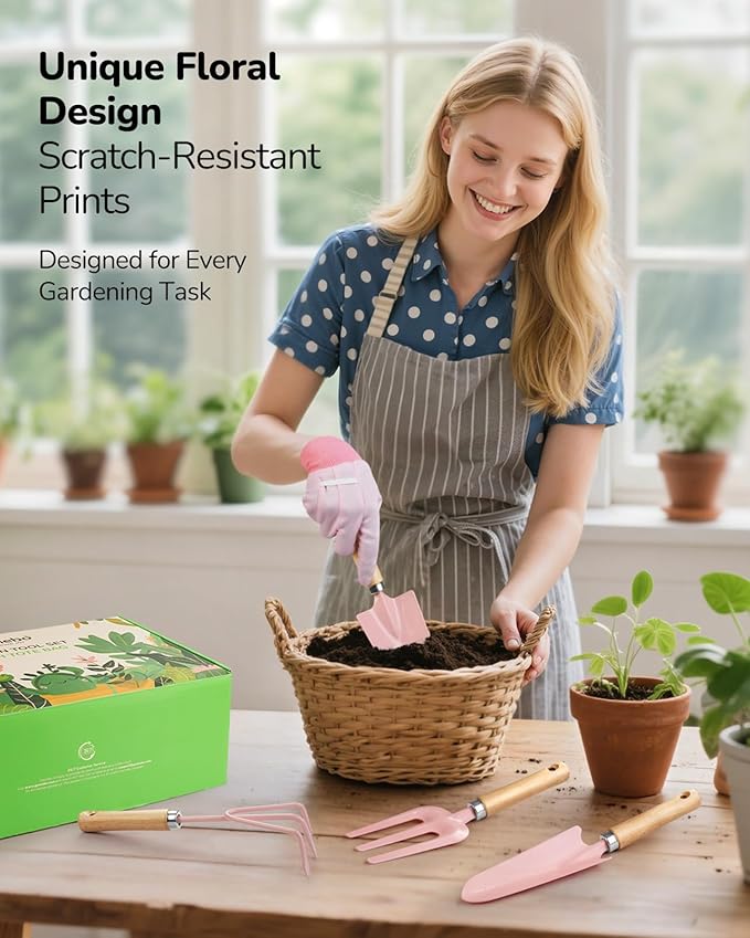 - Unique Floral Design: Grenebo gardening set features a beautifully designed floral pattern, combining stylish design with practical durability. Crafted with premium materials, these gardening tools are made to last for years, offering both aesthetic appeal and reliable performance in your garden, patio, or balcony.