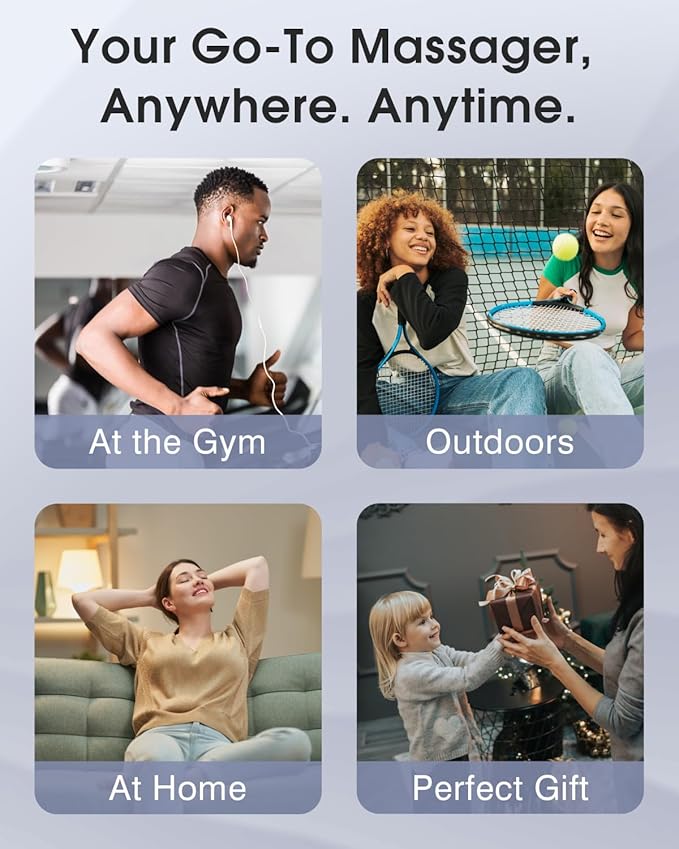 - Compact & Portable Design : Ultra-lightweight mini massage gun easily fits into gym bags, backpacks, or luggage, perfect for on-the-go muscle recovery during workouts, travel, or office breaks