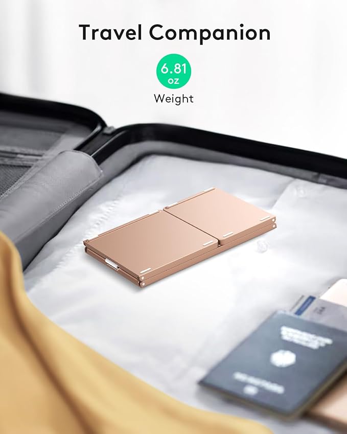 - 【Exquisite & Lightweight Portable Keyboard】Mild Pink matte exterior, made of ABS+PC material, lightweight but stable, without fear of daily wear and scratches. The elegant matte design, excellent touch and clean look make it a perfect match for your tablet, phone and laptop. Only 5.53-ounce, palm-sized keyboard can be folded up and carried around. Provide you with maximum convenience with minimal weight and size. It must be the good choice for editors!