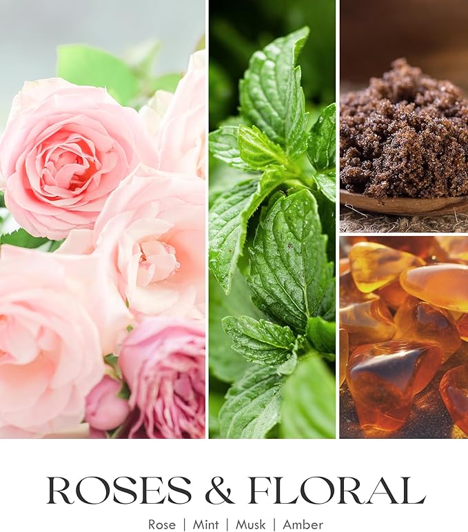 - HIGHLY SCENTED ROSE CANDLE: The aromatherapy candles called Rose is meant to fill your room with aroma, with the top scent of Rose, Pink Pepper, Mint, middle scent of Rose, Raspberry Blossom, Litchi, base scent of apyrus, Amber, Musk, this fresh and dewy scent delivers you full sensory experiences like wandering in the rosy garden on a sunny day.
