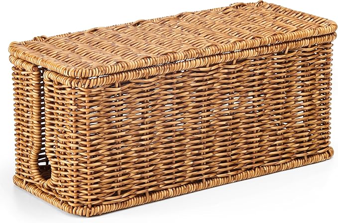 - Breathable Realistic-Looking Faux Rattan Cord Box: Crafted from quality synthetic rattan (PP), this power strip box mimics the look of real rattan while offering better durability and fire resistance. It provides a safe, heat-dissipating environment for electronics
