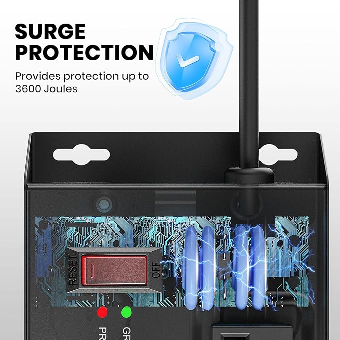 - Heavy Duty Metal Surge Protector Power Strip: 4800J Surge Protection with 20A Circuit Breaker, Prevents Short Circuits, Overcurrent, Overheating, and Overvoltage, Automatically Cuts Off Power When Exceeding 20A, Easy Reset Function