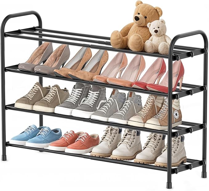 - 【Expandable & Adjustable Design】This shoe rack for closet effortlessly expands from 12" to 27" wide, adapting to your space needs. The adjustable shoe rack features 4-tier shelves to organize sneakers, boots, or kids' shoes, perfect for closet shoe storage, entryway, or small spaces.