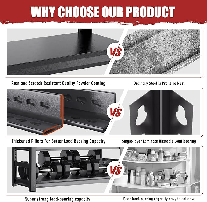 - 【Multi functional storage shelf】The heavy duty shelving is versatile for garage, kitchen, warehouse, living room, bedroom, basement, greenhouse or workplace. Enlarge your storage space, keep your house neat and organized. The optimal choice for your home.