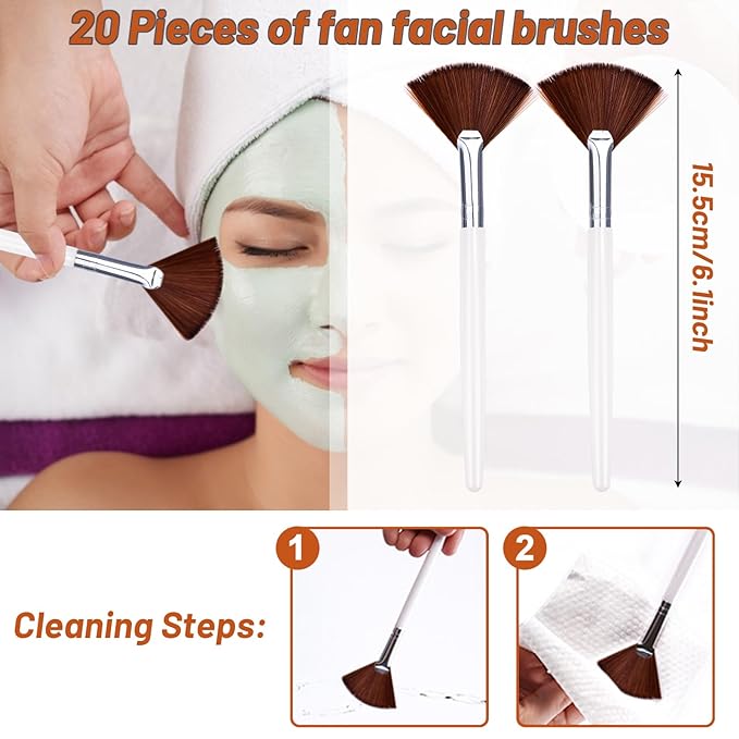 20 Pieces Fan Brushes Facial Applicator Brush Soft Makeup Mask Acid Applicator Brush Esthetician Cosmetic Brush for Mud Cream, Makeup Peel (Brown)