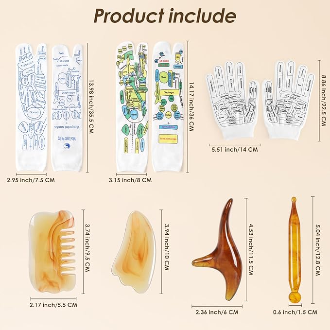 - Easy To Use: Our reflexology socks set is designed for simplicity. Easily understand and locate the corresponding organs and systems in the body through the clear and easy-to-understand diagrams included with the socks. These charts help target specific acupuncture points effectively to enhance the effects of treatment. Among the new masssge tools, the triangular scraping board is Gua Sha Tool. Also for facial skin lifting and scraping Back of neck, scraping any area you feel uncomfortable