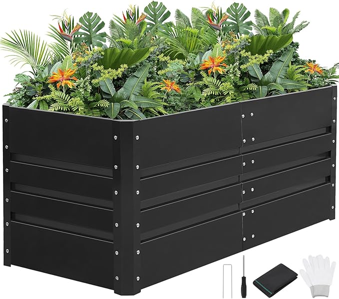 - 【1.8 Feet Deep Growing Space & Ergonomic Height】 The metal garden bed stands at 1.8 feet tall, provides ample space for layering compost, yard waste, and food scraps, ideal for growing medium to deep-rooted vegetables like carrots, beans, potatoes and more. The 21.6-inch elevated height reduces bending and easing back strain, ideal for seniors and gardeners with back pain, also can protecting crops from small animals.