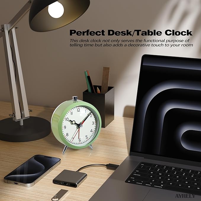 AYRELY® 4" Loud Analog Alarm Clock, Retro Metal Travel & Table Clock Battery Operated, Silent Non-Ticking Desk Clock with Alarm Switch Button for Bedroom, Bedside, Shelf, Office (Green)